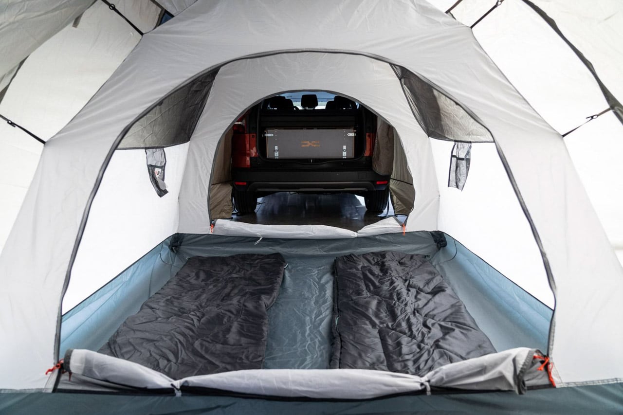 Der JOGGER mit Camper-Kit eignet sich besonders für Ausflüge mit der ganzen Familie, denn an der geöffneten Heckklappe kann ein Zelt angedockt werden, das zusätzlichen Wohnraum schafft.