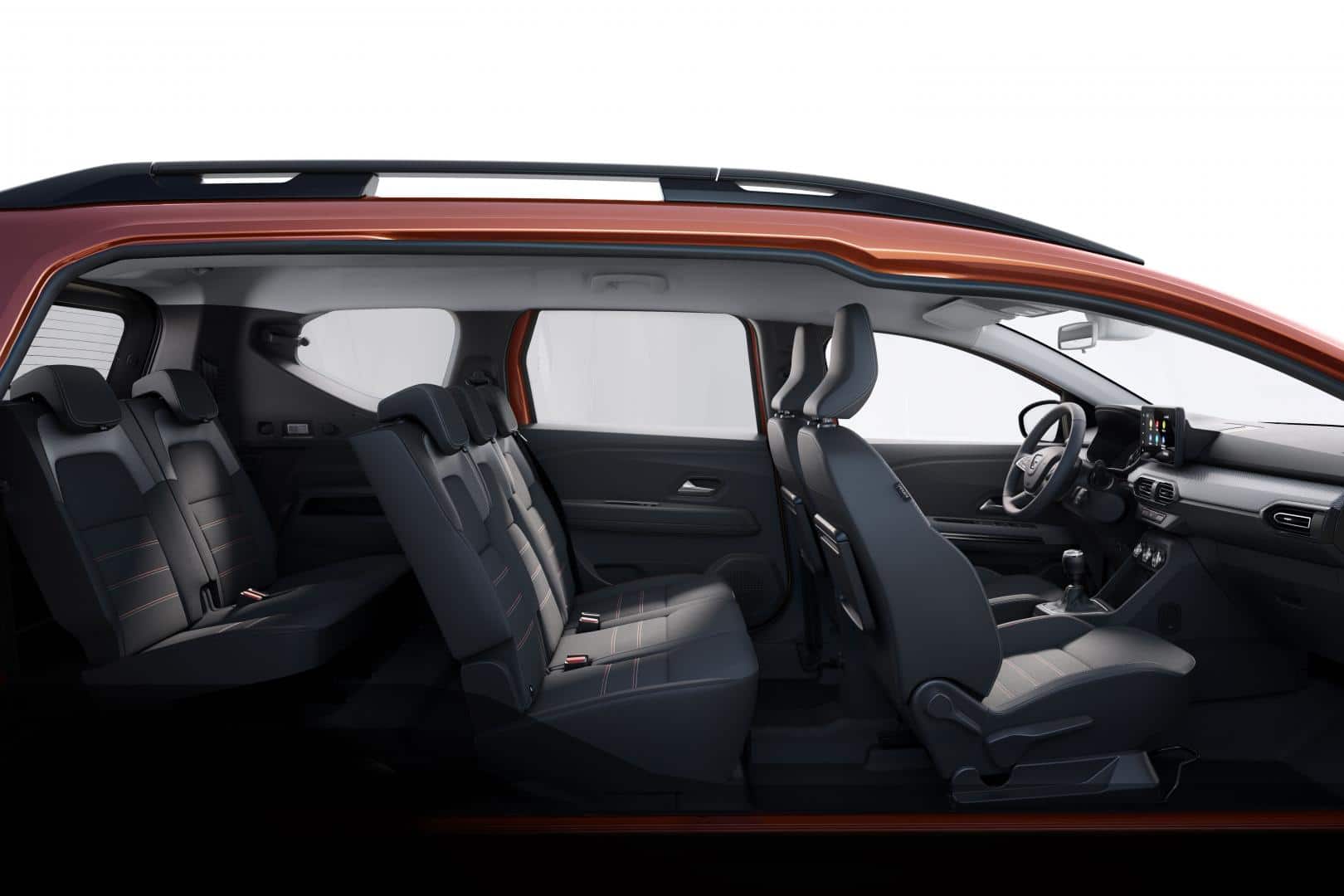 Der Newcomer der rumänischen Renault Tochter bietet bis zu sieben Erwachsenen in drei Sitzreihen Platz. Fahrer und Beifahrer verfügen über eine Kopffreiheit von 92,3 Zentimetern, in der zweiten Reihe liegt der Kopfraum bei 91 Zentimetern. Auf Wunsch ist eine dritte Sitzreihe bestellbar, bestehend aus zwei umklappbaren Einzelsitzen. Die Platzverhältnisse hier zählen mit einer Kniefreiheit von 12,7 Zentimetern und einer Kopffreiheit von 85,5 Zentimetern zu den besten aller Siebensitzer auf dem Markt. Weiterer Pluspunkt: Dank des Kippmechanismus der im Verhältnis 1/3:2/3 geteilten zweiten Sitzreihe und der langen Fondtüren gestaltet sich der Zugang zur dritten Reihe komfortabel.
