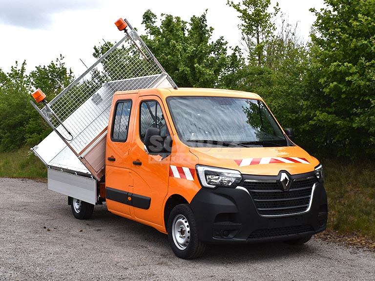 Der Renault MASTER mit Einzel- oder Doppelkabine (bis zu 7 Sitze) als Kipper oder Pritschenwagen ist das ideale Fahrzeug für Ihre täglichen Arbeiten z.B. auf Baustellen oder bei der Grünflächenpflege. Die Kombination aus Renault MASTER und den individuellen Einzelaufbauten mit Spezialfunktionen unserer Aufbaupartner garantiert Ihnen einen reibungslosen Ablauf Ihrer Arbeitsprozesse. Die Fahrzeuge sind auch als Serienproduktion für ganze Fahrzeugflotten erhältlich. Maßgeschneiderte Lösungen und eine große Ausstattungsvielfalt werden Sie überzeugen.