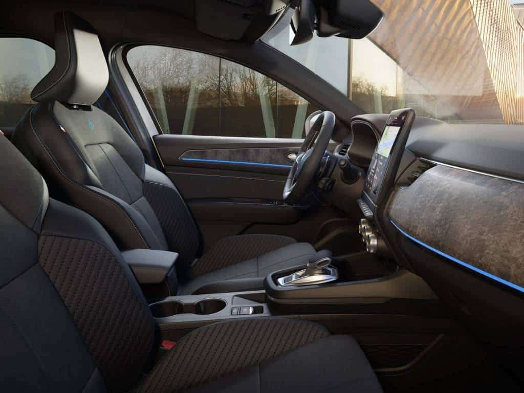 schöpft aus der DNA der Sportwagenmarke Alpine. Merkmale im Innenraum sind unter anderem der E-Shifter-Wählhebel, Aluminiumpedale, Ziernähte in Blau an den Sitzen sowie das in die Rückenlehne eingearbeitete Alpine Logo. Die Türverkleidungen und das Lenkrad sind entsprechend den französischen Nationalfarben mit rot-weiß-blauen Nähten verziert.