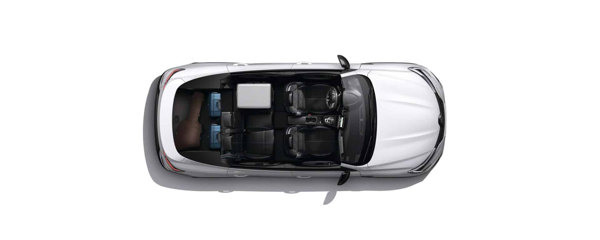 Auch beim Kofferraumvolumen nimmt der Arkana mit 513 Litern (E-TECH Full Hybrid 145: 480 Liter) einen Spitzenwert in seiner Klasse ein. Die Rückbank lässt sich im Verhältnis 1/3 zu 2/3 umklappen, so dass in Kombination mit dem flexiblen Kofferraumboden eine ebene Ladefläche mit 1,87 Meter Länge entsteht. Die maximale Ladekapazität liegt bei 1.296 Litern (E-TECH Full Hybrid 145: 1.263 Liter). Hinzu kommen zahlreiche Stau- und Ablagefächer im Innenraum, darunter in den Ausstattungen Techno und Esprit Alpine eine induktive Ladestation für das Smartphone.
