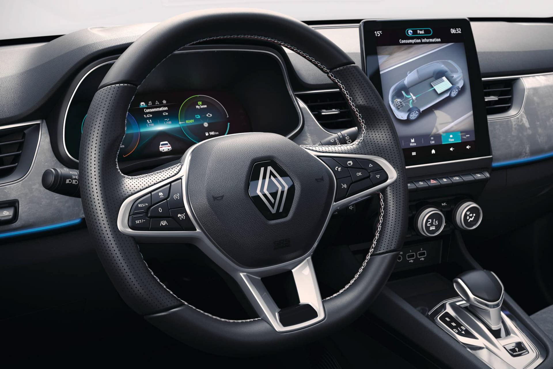 Der Innenraum des Renault Arkana kombiniert Hightech mit großer Geräumigkeit und hoher Qualitätsanmutung. Von den Schwestermodellen Clio und Captur übernimmt er das fahrerorientierte „Smart Cockpit“-Konzept. Neben hochwertigen Materialien und zahlreichen Komfortdetails sorgt die Ambientebeleuchtung für ein angenehmes Reisen.