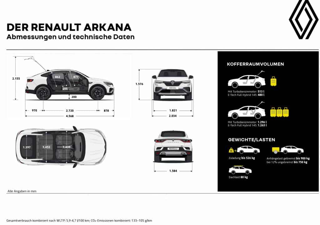 Die Maße des ARKANA E-Tech im Überblick