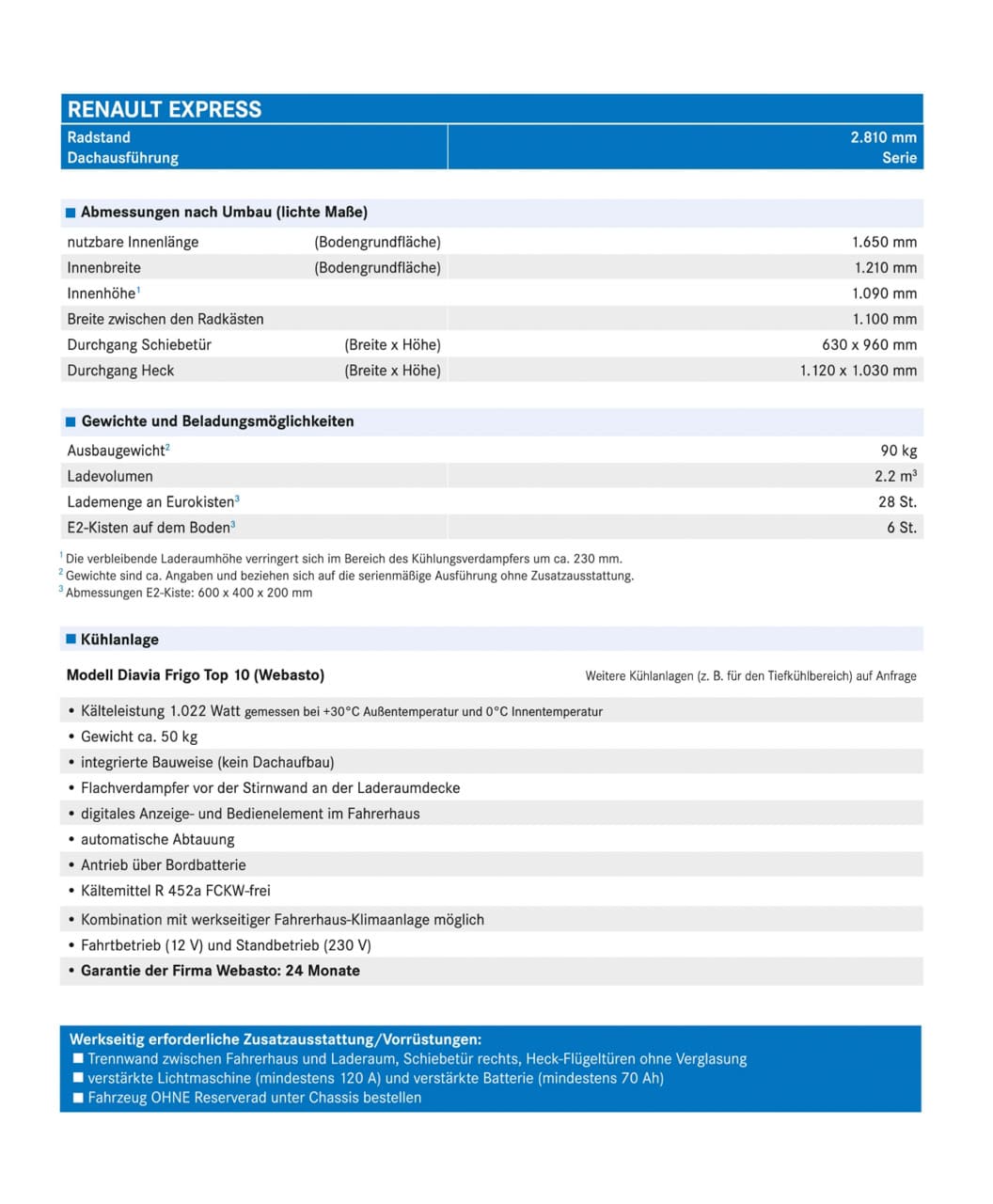 Renault EXPRESS Kompakttransporter mit CSA Kühlausbau für temperaturgeführte Transporte in der Pharmalogistik