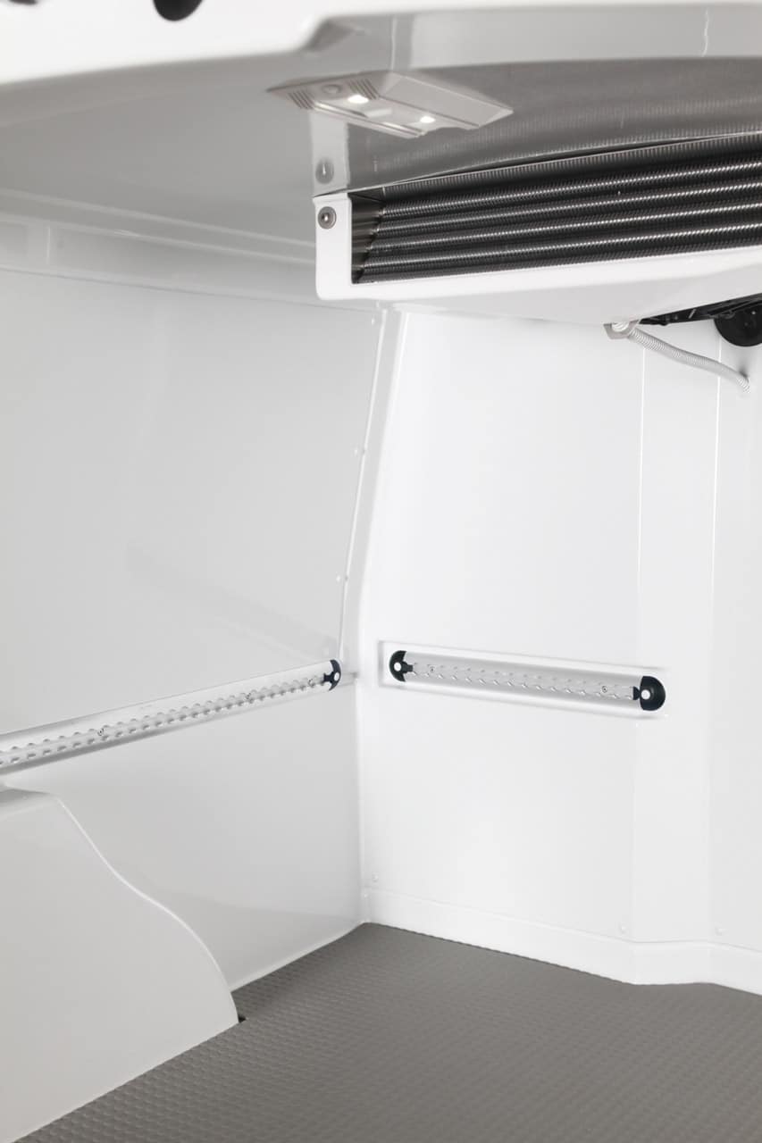Die Kombination aus leistungsstarker und innovativer integrierter Kühlanlage ohne Dachaufbau mit einer hochwertigen GFK Laderaumverkleidung und wirkungsvoller Dämmung nach ATP- und HACCP Norm sichert den Transport aller gekühlten Lebensmittel, wie z.B. Fleisch- und Wurstwaren oder Fisch.