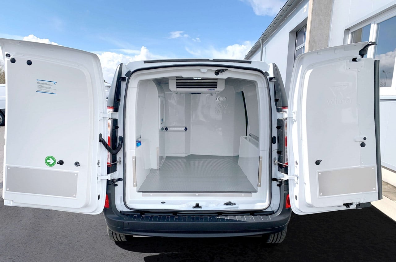 Der Renault KANGOO Z.E. verfügt als elektrobetriebenes Basisfahrzeug mit WINTER-Kühlausbau über ein elektrisch autark betriebenes Kühlsystem. Dieses wirkt sich nicht auf die Fahrzeugleistung und damit die Reichweite des Fahrzeugs aus. Die Firma WINTER hat hierfür verschiedene Batterielösungen entwickelt.